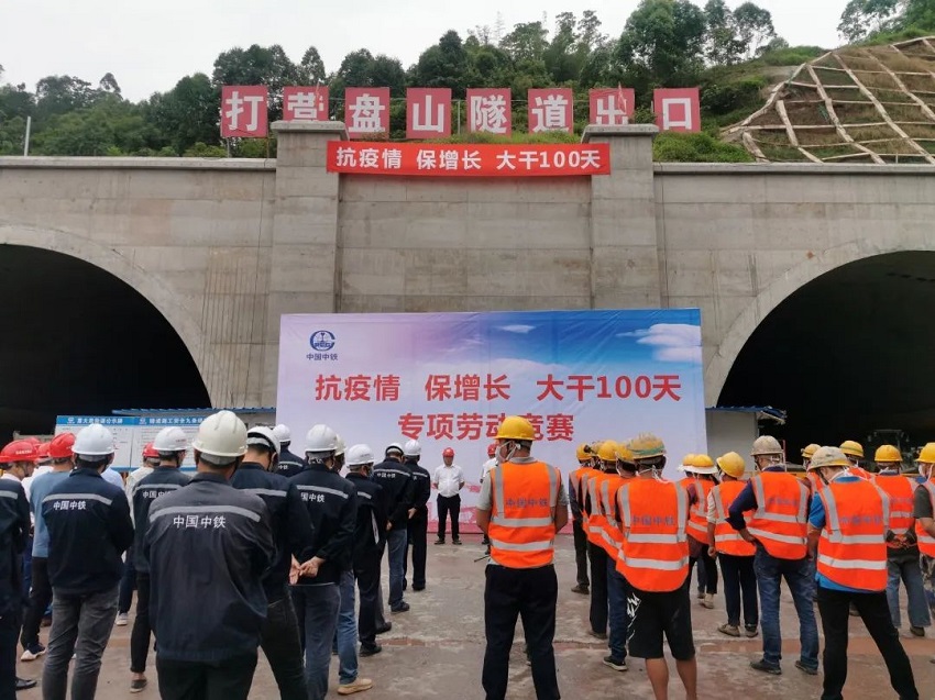5月27日下午,在打營盤山隧道出口開展“抗疫情、保增長,大干100天”勞動競賽動員會,共計40余人參加。