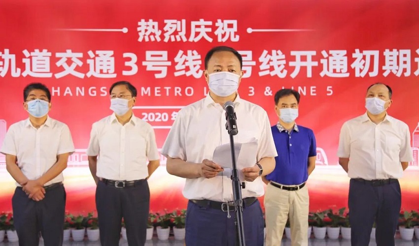 ▲長沙市委副書記、市長、湖南湘江新區(qū)黨工委書記鄭建新宣布長沙地鐵5號(hào)線正式載客初期運(yùn)營