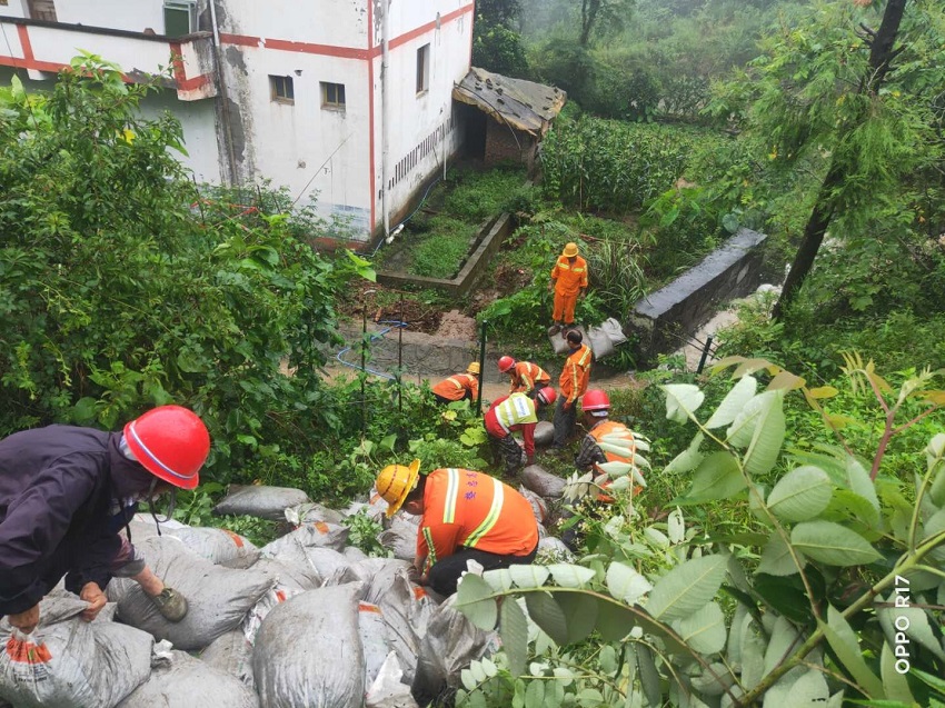 3、“除”較大隱患。尖山子隧道棄土場雨水過大導致水流外溢,公司及時用沙袋增高排水溝高度,同時,抓住時機在雨水短暫停歇時加緊砌磚加固,進一步防止水流外溢。