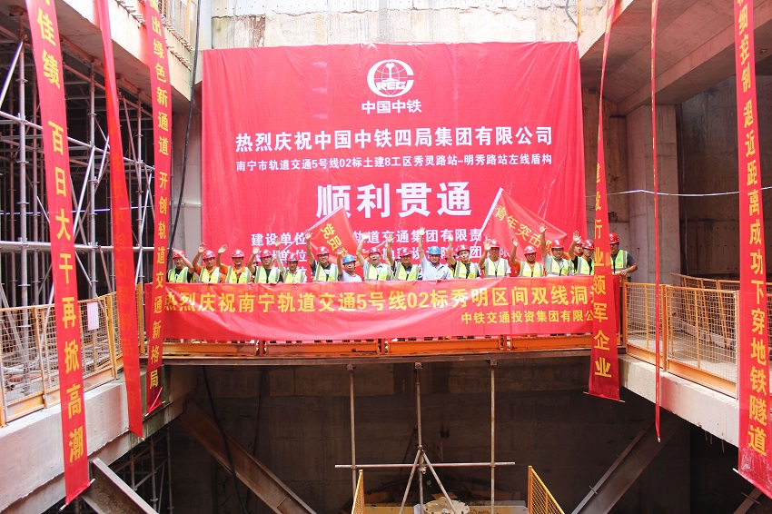 ▲7月20日,秀靈路站至明秀路站區間左線貫通標志著南寧地鐵5號線02標項目全線隧道順利實現“洞通”