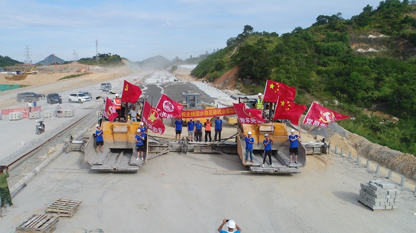 7月30日,汕揭項目01標二項目部歷時199天,全面完成了長8300m、占面123403.95m³的水穩層攤鋪施工,標志著汕揭項目汕頭段的水穩層施工全部完成。