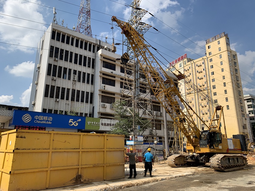 廣西大學站2號風亭及M號出入口地連墻施工地下管線密集且位于城市主干道,臨邊建筑物聚集,周邊高壓電密集,施工場地受限,地質條件比較復雜,是施工過程中面臨的主要難題。指揮部與項目部超前策劃,尤其是新舊建筑物覆蓋及110kv高壓架空下地連墻施工,多次與設計單位溝通,同時,邀請專家及各參建單位進行探討論證,細化施工環節,優化施工工藝并組織專業人員、設備、材料,選用合理的施工方案和機械設備,確保作業安全。截至目前,地連墻完成施工,重大風險源臨邊建筑7天酒店大樓最大沉降為6mm(設計值20mm),全過程未發生監測預警,圓滿實現安全目標。