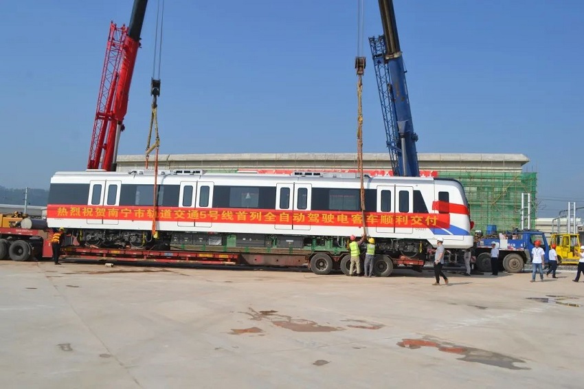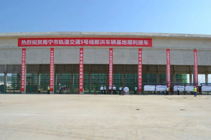 8月28日上午9時18分,南寧地鐵5號線那洪車輛基地迎來接車的火熱場面,在兩臺大型起重機的吊裝下,南寧市首列全自動駕駛電客車順利移入那洪車輛基地內軌道上,標志著南寧地鐵5號線正式開啟接車任務,向通車試運營又邁出了關鍵性一步。