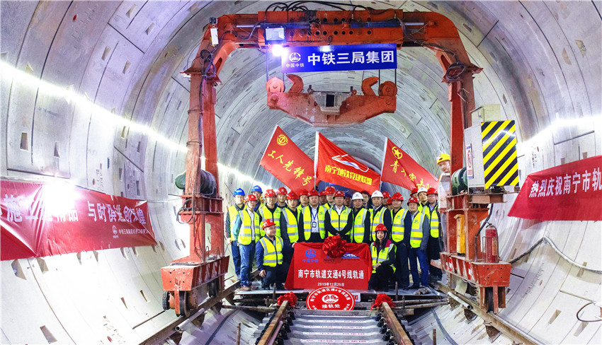 中國中鐵作為南寧地鐵4號線的主要施工總承包方,承建了體育中心東站、良慶大橋南站、良慶圩站、楞塘村站、五象火車站、清平坡站、龍崗站7個車站的土建工程及全線的機電裝修工程。中國中鐵各參建單位在4年多的每一個日夜,由中鐵廣西軌道交通指揮部牽頭強化統籌,精心謀劃,合力攻堅,特別是在新冠肺炎疫情爆發后,面臨土建工程交付滯后,指揮部在做好疫情防控的同時,通過定人員、定責任、定實效、定措施,進一步強化施工管理,實行包保責任制,掃清了一切障礙,提前完成軌通、電通、接觸網熱滑等重大節點。