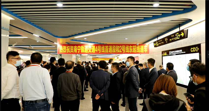 上午9時15分,通車儀式在南寧地鐵4號線體育中心東站舉行,中鐵中南區域總部(中鐵交通)總經理譚世俊,中鐵中南區域總部(中鐵交通)副總經理陳戈,中鐵廣西軌道交通指揮部、中鐵各參建單位建設者參加儀式并見證開通。