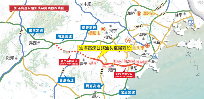 ▲廣東汕湛高速公路汕頭至揭西段路線圖
