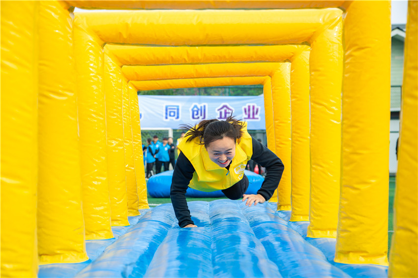 本屆職工趣味運動會組織了競速接力(珍珠傳遞→動感毛毛蟲→閃電縱隊)、穿越叢林(匍匐前進→九宮格→鯉魚越龍門)、步步高升等3個大項、7個小項運動項目。賽場上,運動健兒們比速度、比耐力、比技巧、比協(xié)作,以默契的配合和鍥而不舍的精神你追我趕、勇往直前,贏得了現(xiàn)場觀眾的陣陣助威聲和吶喊聲。