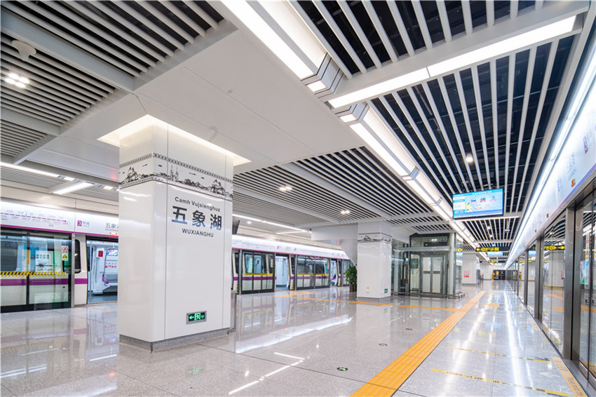南寧市軌道交通3號線以“錦繡紫”為線路主色調(diào),列車車體側(cè)面采用紫色腰帶貫穿列車,與線路主色調(diào)相呼應(yīng),如同一幅秀美的壯錦。3號線串聯(lián)南寧西鄉(xiāng)塘區(qū)、興寧區(qū)、青秀區(qū)、五象新區(qū)等4大城區(qū),是重點聯(lián)系江北與江南、五象新區(qū)之間的骨干線,也是城市軌道交通“井”字網(wǎng)骨架最重要的一縱。