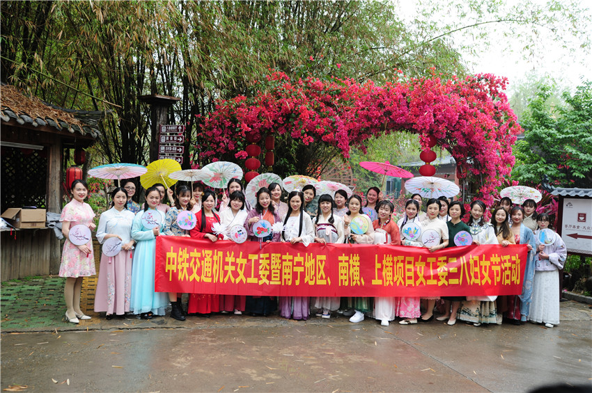 中鐵交通機(jī)關(guān)、南寧地區(qū)、南橫、上橫項(xiàng)目一眾女神齊聚,組織開展了以“傳承中華國粹·綻放巾幗魅力”為主題的漢服秀傳統(tǒng)文化體驗(yàn)活動。