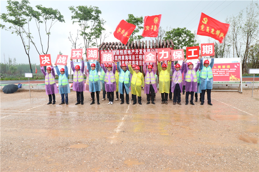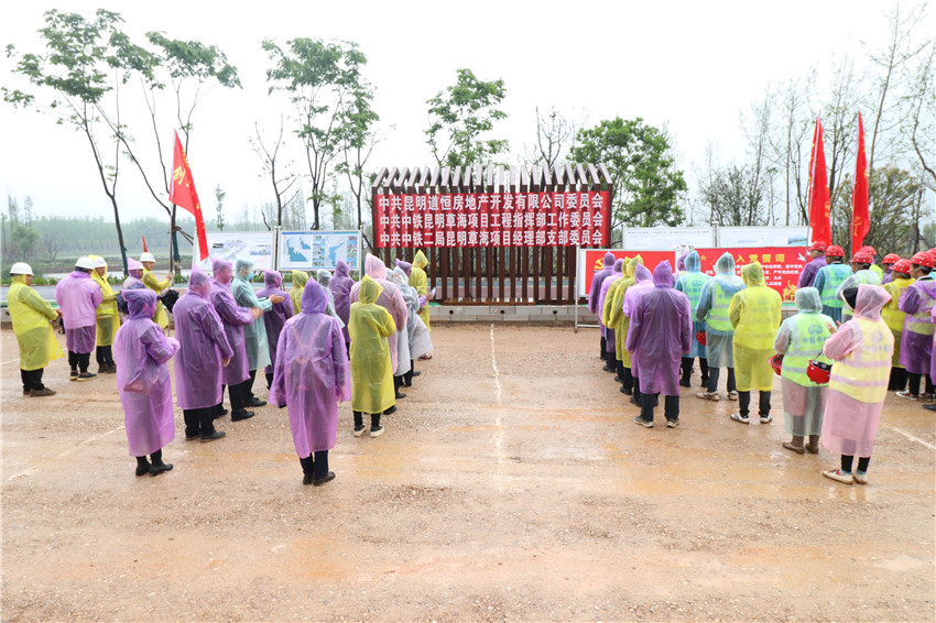 4月17日,昆明項目就按時完成環湖路第四段全段道路建設,組織開展了“攻堅克難九日會戰,決勝生態廊道建設”誓師大會,項目參建各方代表共計50余人參加會議。