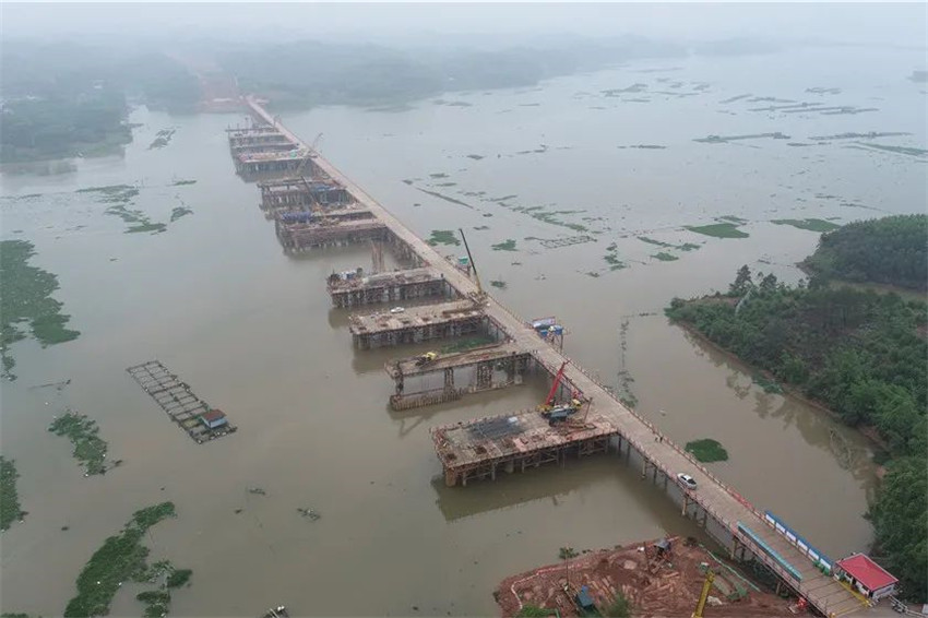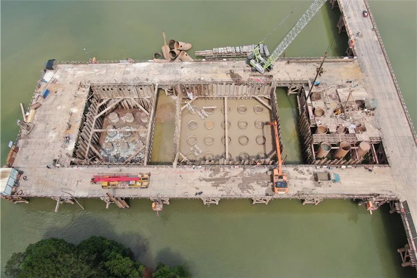 ▲魯塘江大橋首個樁頂系梁順利澆筑完成