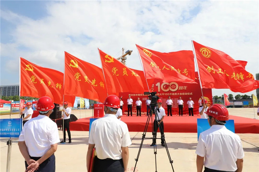 大會表彰了先進集體和個人,重溫了入黨誓詞,對“大干100天”專項勞動競賽進行了動員和部署,參建項目代表進行了表態發言,對黨員先鋒隊、工人先鋒號、青年先鋒崗進行了授旗。