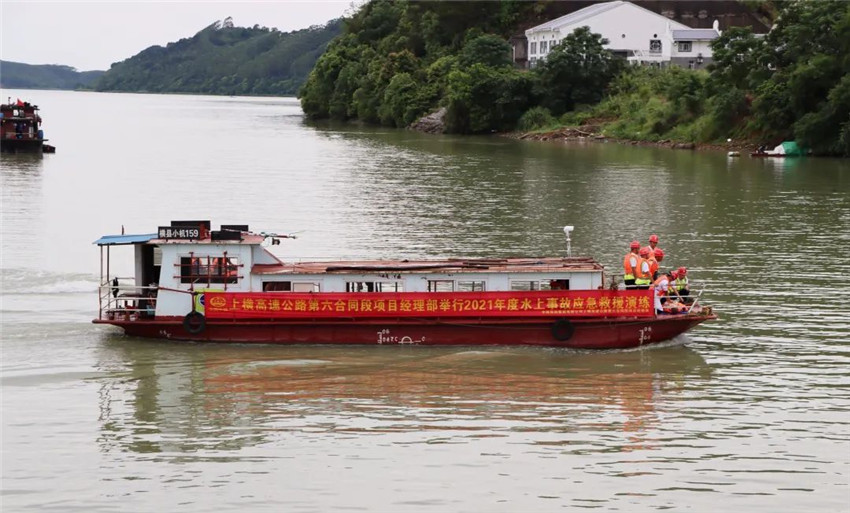 通過前期的細(xì)致謀劃和精心準(zhǔn)備,演練模擬西津郁江特大橋的鋼棧橋臨邊護(hù)欄拆除作業(yè)時,由于江面突刮大風(fēng)導(dǎo)致一名作業(yè)人員不慎跌落江中。事故發(fā)生后,現(xiàn)場人員立即將情況報告現(xiàn)場負(fù)責(zé)人,現(xiàn)場負(fù)責(zé)人立即上報項(xiàng)目部;項(xiàng)目部接到報告后,立即啟動專項(xiàng)應(yīng)急預(yù)案并按規(guī)定將事故逐級上報。上橫項(xiàng)目分級響應(yīng)后派員奔赴現(xiàn)場,會同項(xiàng)目部針對現(xiàn)場情況科學(xué)制訂救援方案、有效開展現(xiàn)場處置、及時救助落水人員,并有序作善后處理。