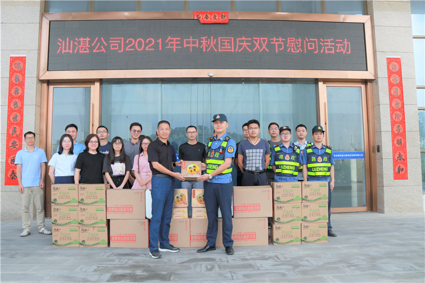 9月16日,汕湛公司組織開展了2021年中秋國慶“雙節”慰問活動,公司領導班子成員為職工送上了月餅等慰問品,并向公司職工送上了節日祝福,叮囑全體干部職工要嚴格遵守疫情防控各項規定,勿忘廉潔自律,堅守“底線”,不碰“紅線”。