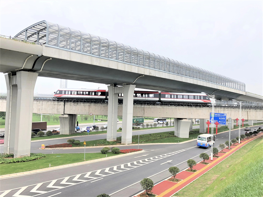 ▲主線高架橋跨磁浮軌道線大氣壯觀、科技含量高