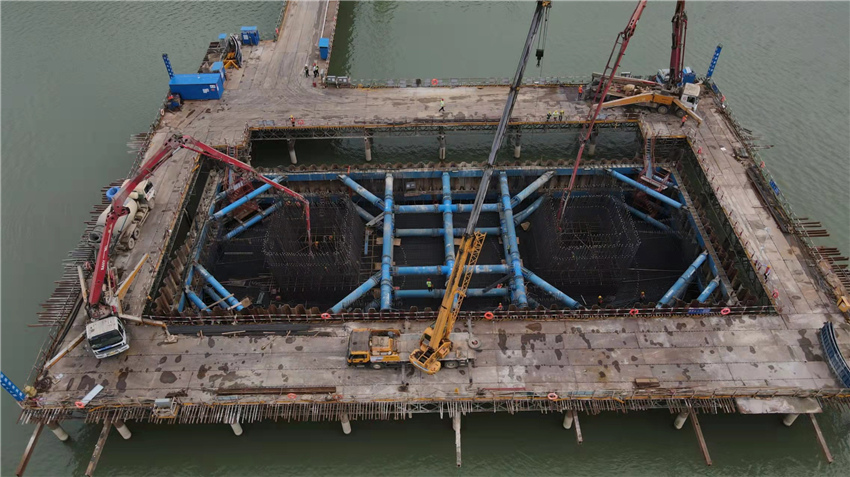 據悉,為確保0塊澆筑順利進行,項目公司及施工單位超前謀劃、精心組織,澆筑前針對混凝土生產、運輸、澆筑等環節,多次召開方案研討會和專項施工培訓,全程管控施工工序。同時,積極組織技術人員編制了詳細的澆筑實施方案,對施工人員指定具體振搗范圍,嚴防漏振、過振現象,嚴格控制好分層厚度。