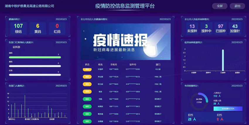爐慈桑龍項目嚴格落實各項疫情防控舉措,積極引入疫情防控信息監測管理平臺,對參建單位管理人員、勞務作業人員、常駐工地門衛、工地小賣店等3000多人全面覆蓋,實現縱向貫通、橫向覆蓋,用“數智防疫”賦能項目生產經營,為項目投資建設管理和職工生命健康安全筑牢了“科技長城”。